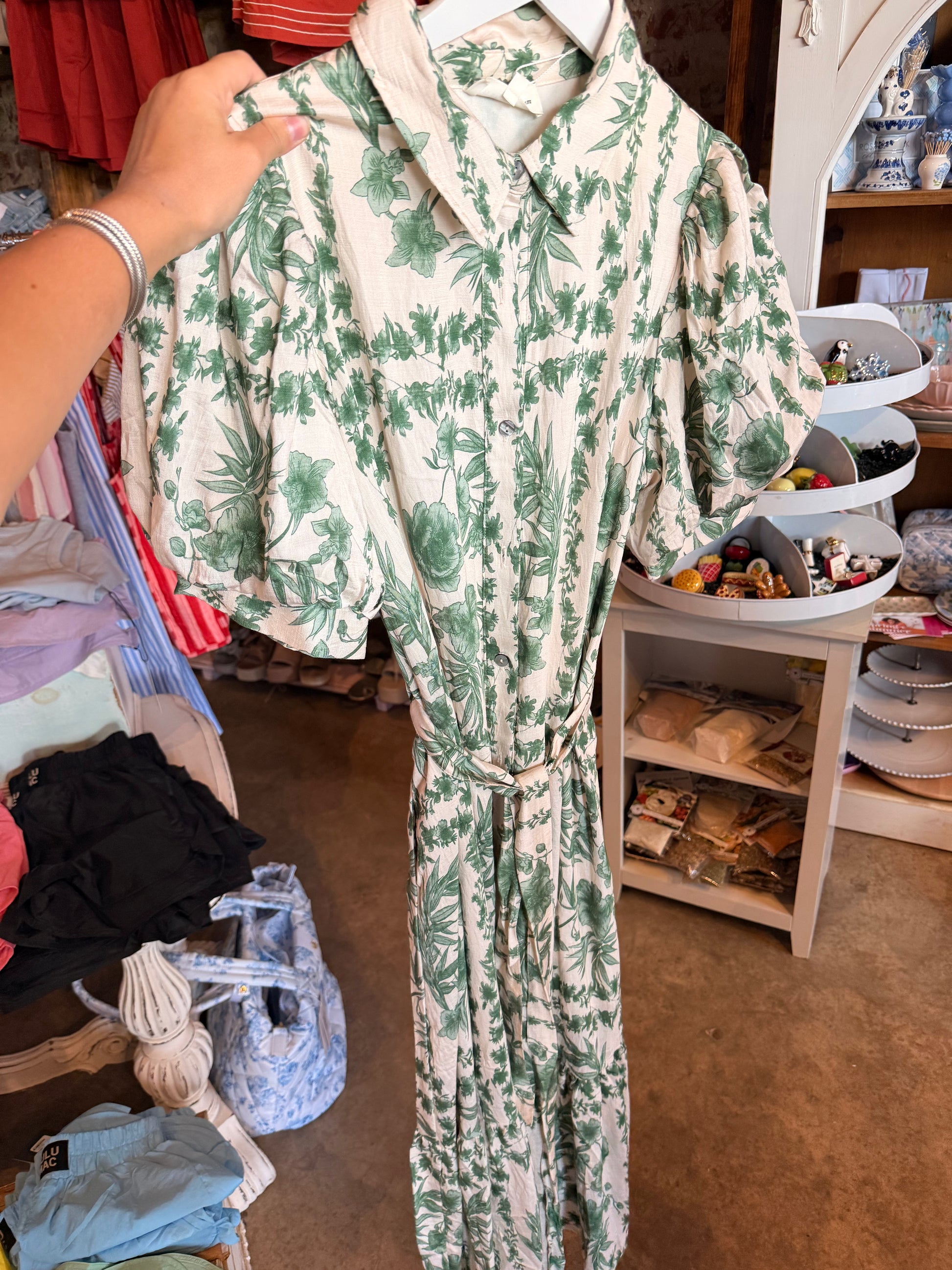 Green and White Midi Dress